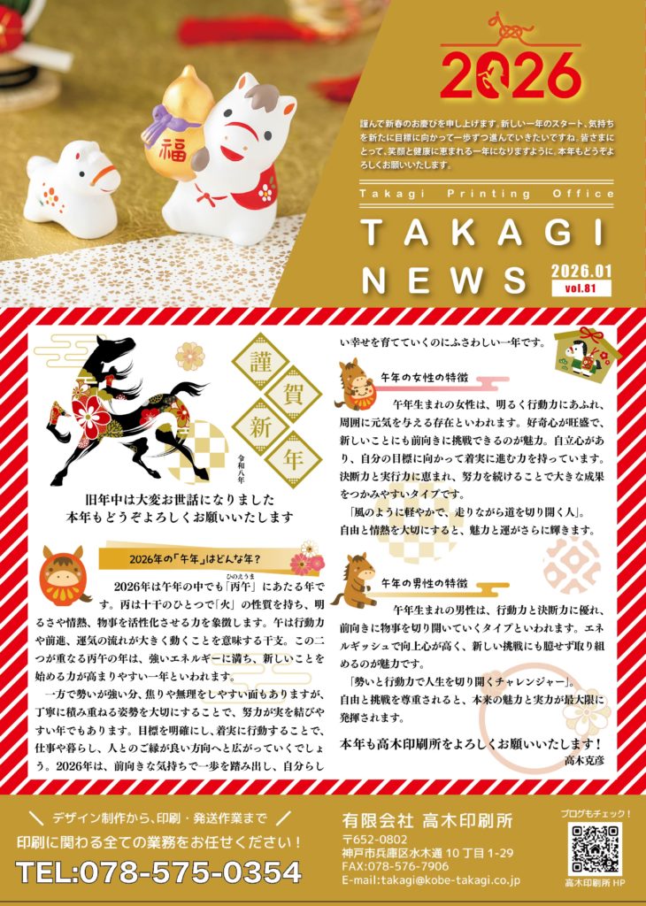 さて、今回の高木ニュース1月号の表紙は、今年の干支「午年」にまつわるお話を掲載しています。
